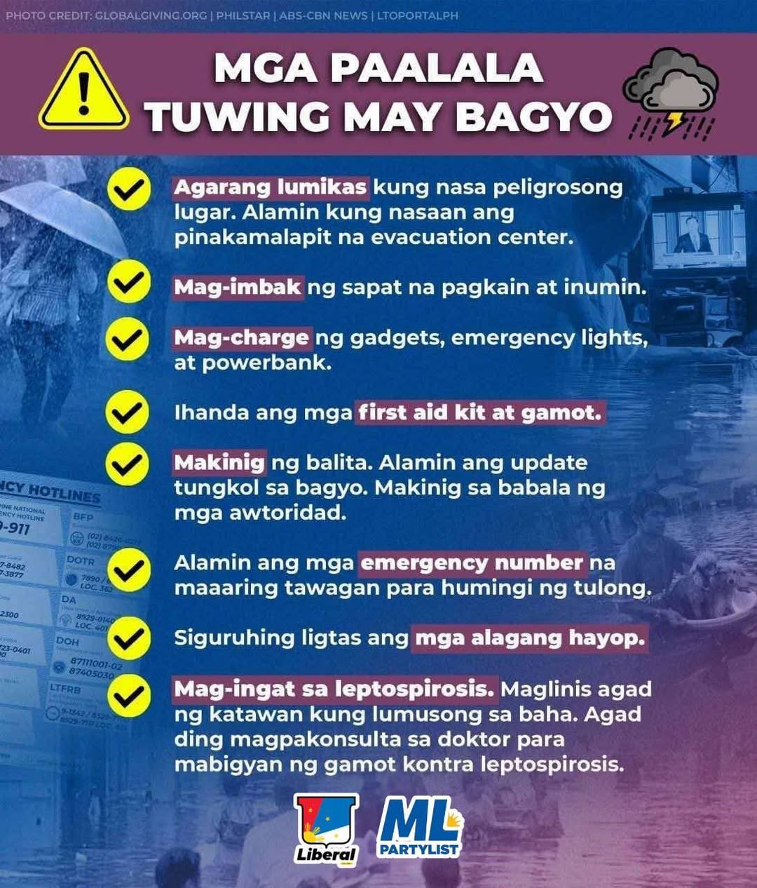 Posts Mga Paalala Tuwing May Bagyo Maging handa, maging ligtas. Paalala po ngayong panahon ng bagyo. Alamin, mag-ingat, at lumikas agad para sa sarili, pamilya, at komunidad. #OpongPH